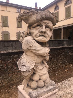 L’ area complessiva interna è divisa a metà: sul lato ovest il cortile, sul lato est il giardino pensile, dove vi sono nove statue nane caricaturali, tipiche espressioni del grottesco settecento che troviamo anche in altre residenze del periodo.