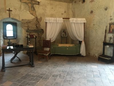 Durante la visita guidata alla Rocca di Urgnano potrete visitare la stanza dove si dice soggiornò fra’ Ghislieri mentre scappava da Bergamo. E’ arredata sobriamente, con un letto dell’epoca, uno scrittoio con sedia e un inginocchiatoio.