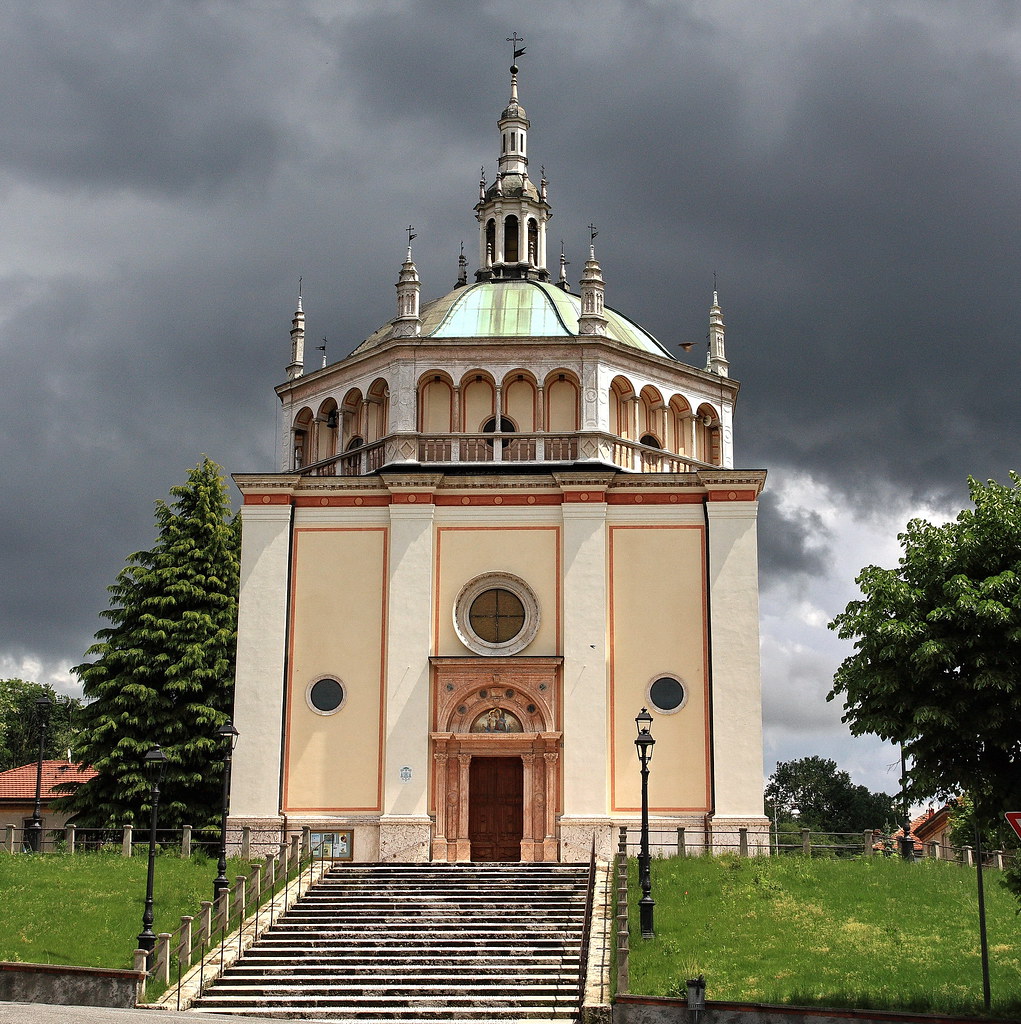 Costruita tra il 1891 e il 1893, ha una pianta quadrata con un basamento in ceppo dell’Adda e culmina in un’ampia cupola ottagonale, circondata, nella parte esterna, da un loggiato ingentilito da colonnine in marmo. All’interno, le piccole dimensioni dell’edificio lo rendono raccolto e suggestivo. Le ricche decorazioni delle pareti interne ricalcano in modo pressoché fedele quelle della chiesa bustocca, e raggiungono l’apice nella cupola, nella rappresentazione di un cielo stellato in una notte serena.